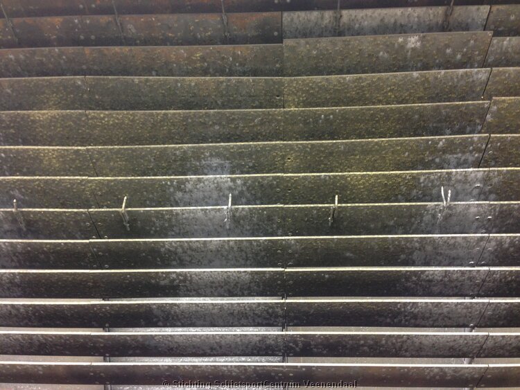 Het gaat om grote hoeveelheiden, bijv. in de 2 hallen met 25 meter banen moet ca. 40.000 m3 lucht per uur afgezogen worden